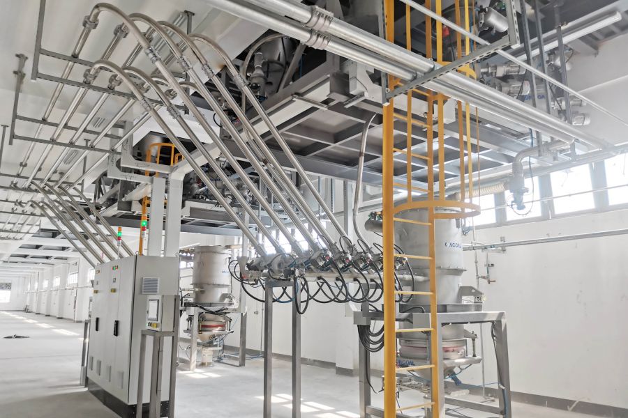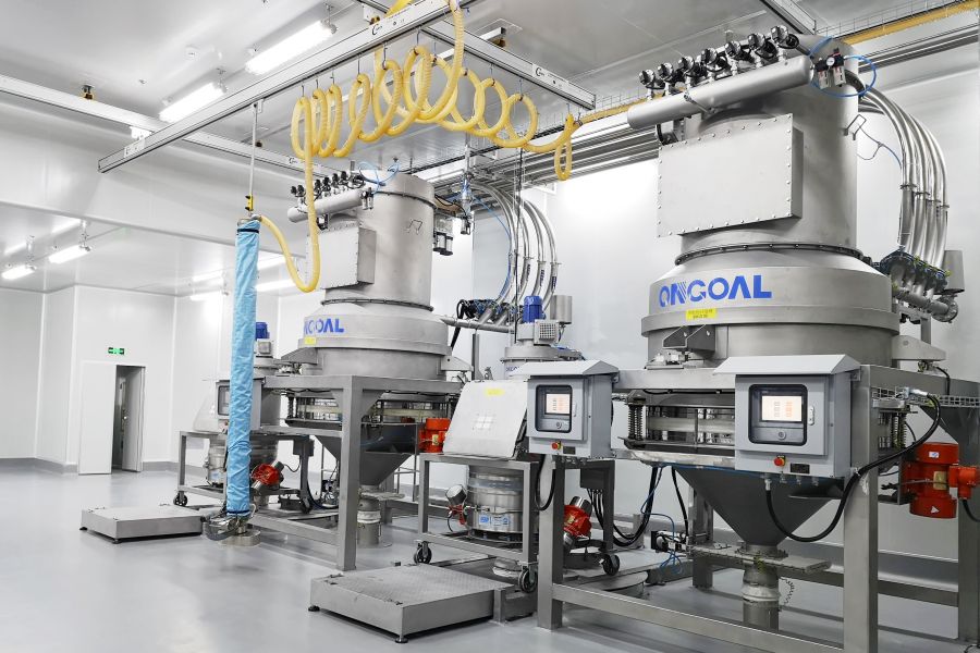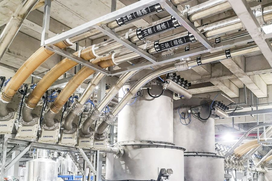 可對接多個料倉進行配料計量,標準配置5/8個進料口,最多能給24種不同粉粒料配料。