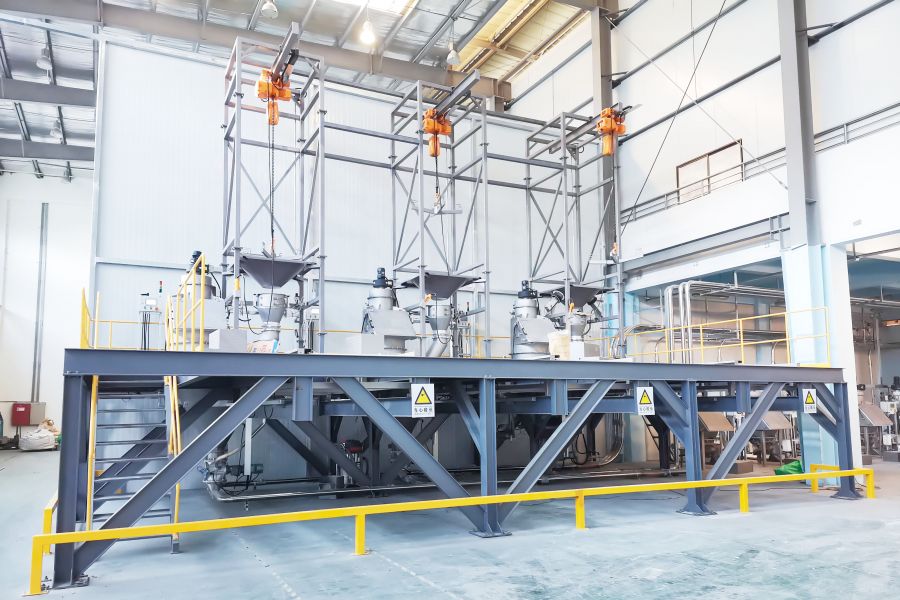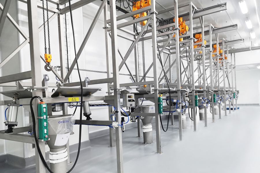 潔凈行吊和電動葫蘆操作,固定升降拉直袋口輔助卸料,省時省力