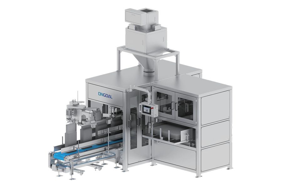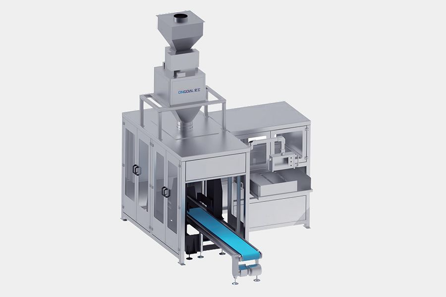 四面夾持噴口:自動套袋檢測成功后開始袋內充料,四面密封打包,確保無粉塵泄露;填充完成后瞬時拉直袋口為封口作準備。